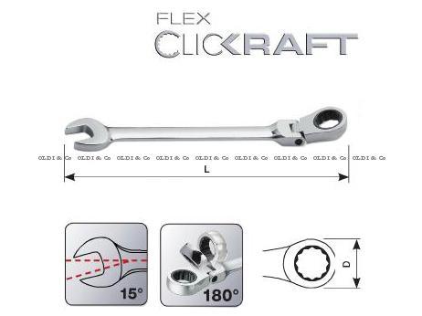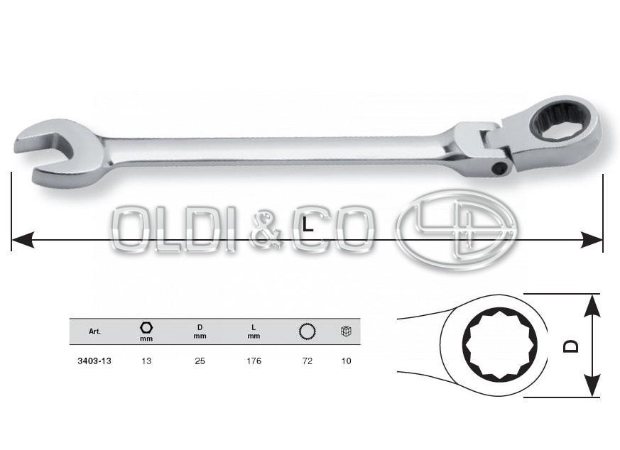 Veids: Gear wrench (ar tarkšķi), ar šarnīru