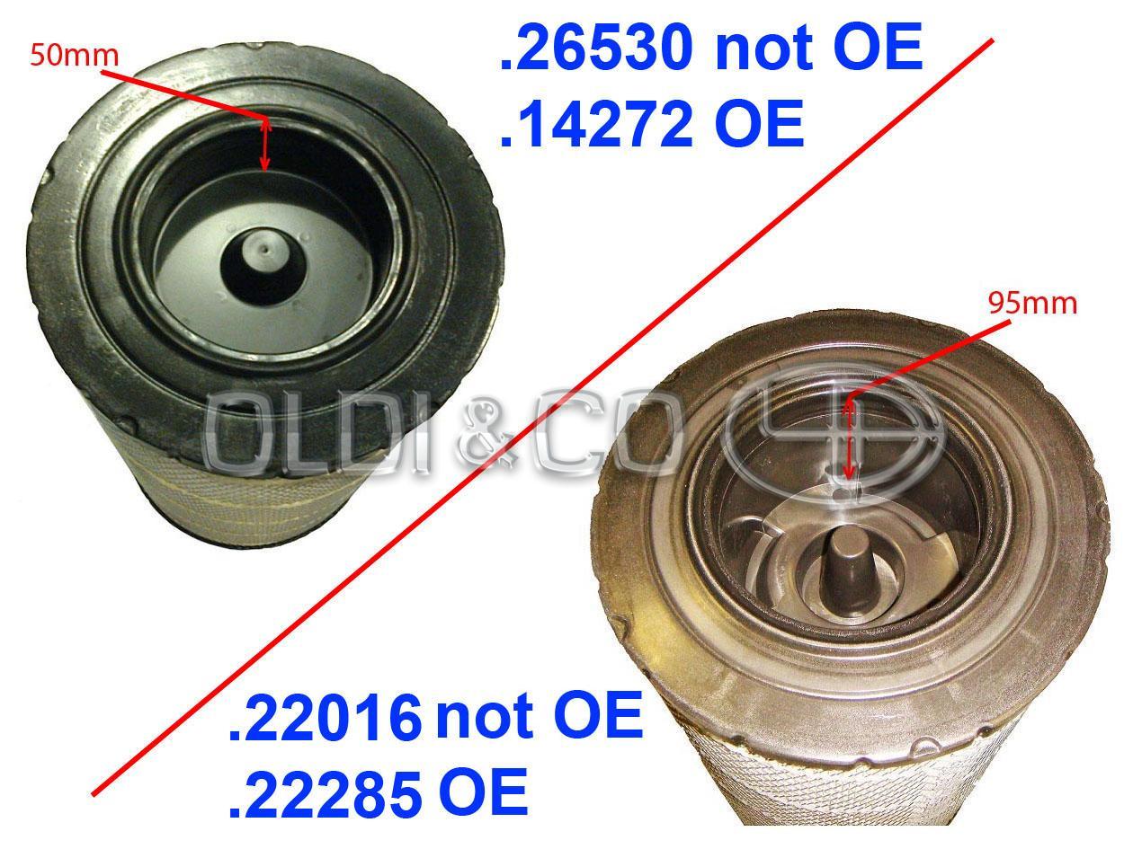 MAN MERCEDES - ACTROS II, ACTROS III, ACTROS IV, AXOR II SCANIA - Series 4, Series 5 (P/G/R/T) VOLVO - VM Ārējais diametrs, mm: 265 Augstums, mm: 530 Iekšējais diametrs, mm: 170